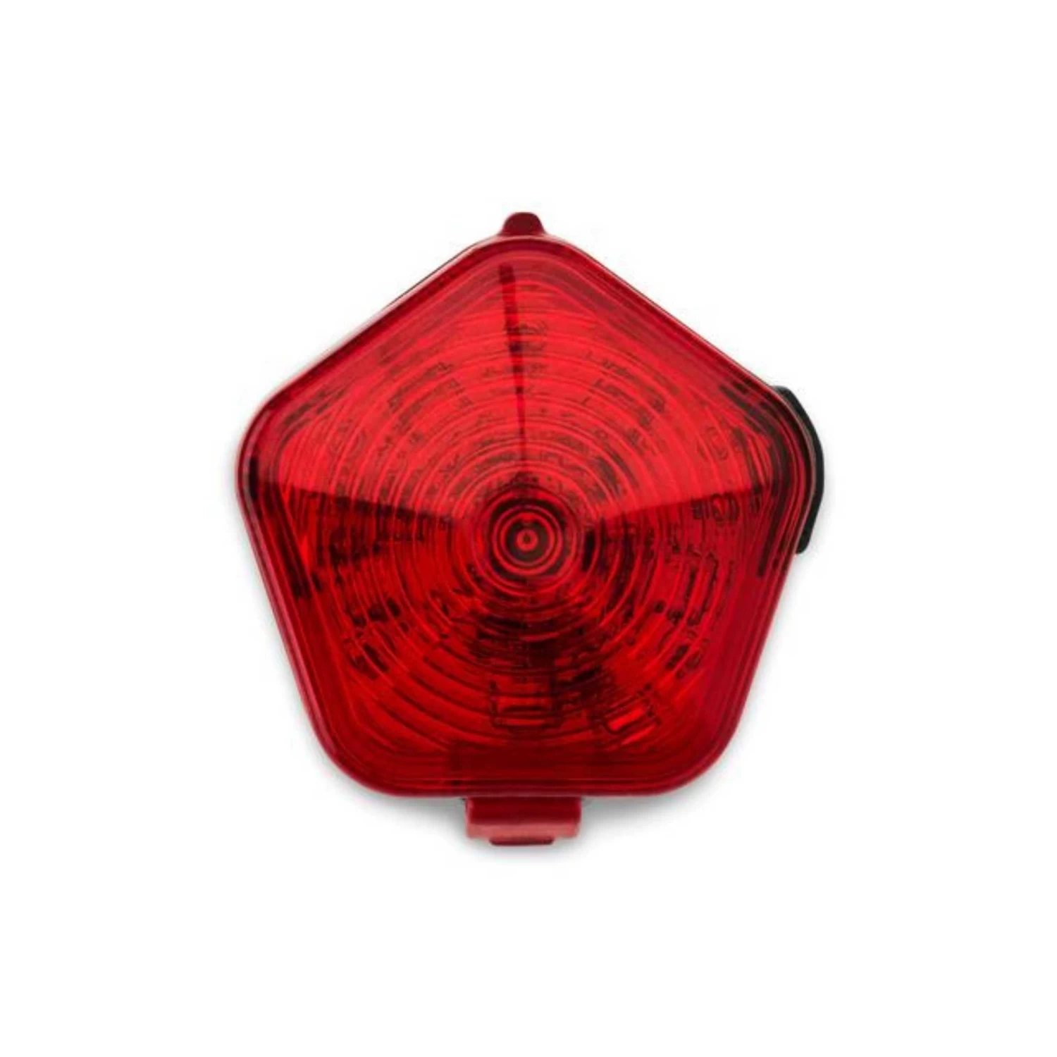 Rapid flash and audible indications when battery needs to be recharged LED lights emit through translucent red shell