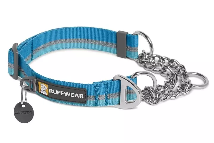 The Chain Reaction Collar is a martingale collar that combines reflective Tubelok™ webbing and a short section of stainless steel chain. The limited-cinch martingale design is popular among dogs who have a knack for slipping out of traditional collars. Packed full of Ruffwear’s signature collar features: separate ID tag attachment point, a silicone tag silencer, and strong and comfortable webbing that holds its color.