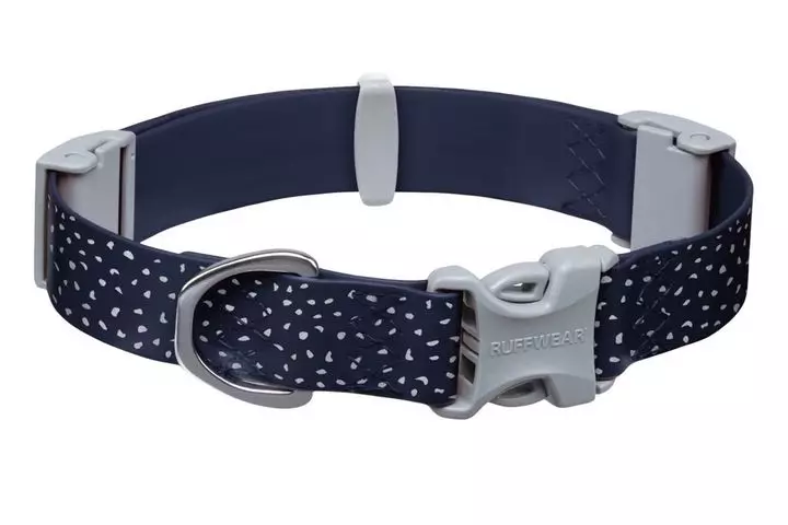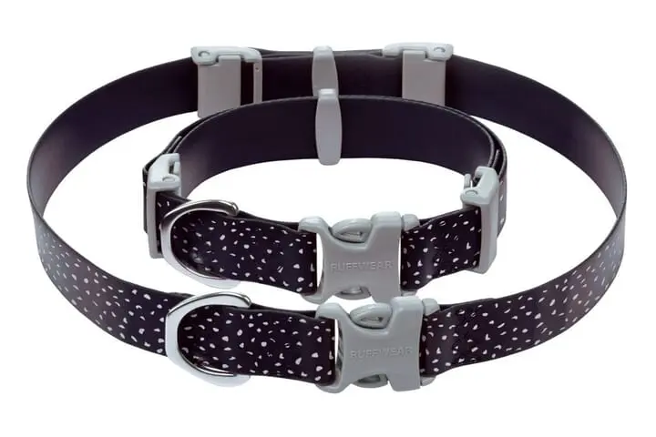 Includes reflective screen printing, and packed full of Ruffwear’s signature collar features: separate ID tag attachment point on the new piton-inspired tag holder, a silicone tag silencer, and a strong leash attachment point for a confident connection on-leash.