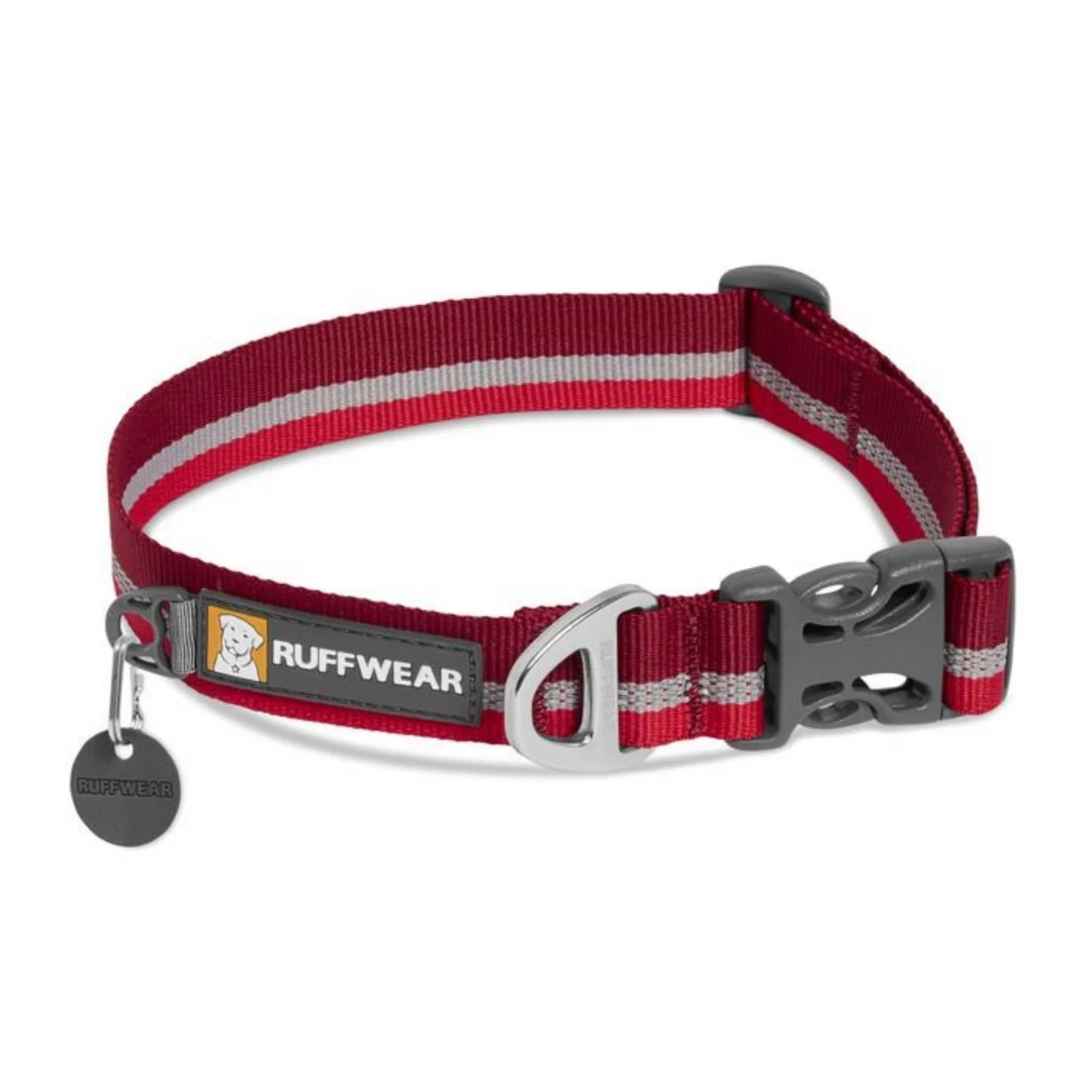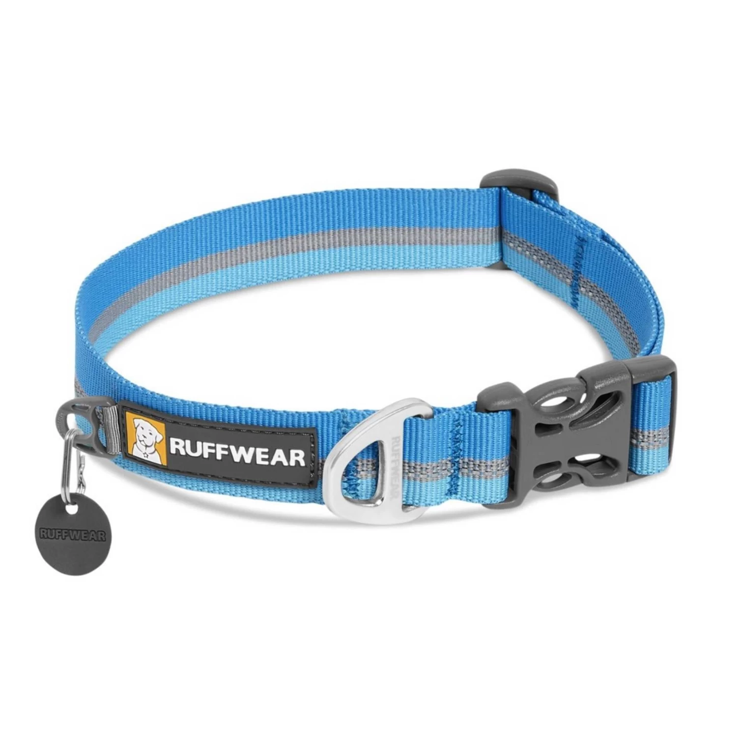 The Crag Collar is packed full of Ruffwear’s essential collar features: an aluminum V-ring, separate ID tag attachment point, and a silicone tag silencer.