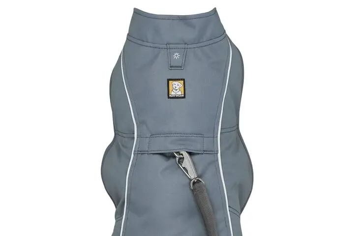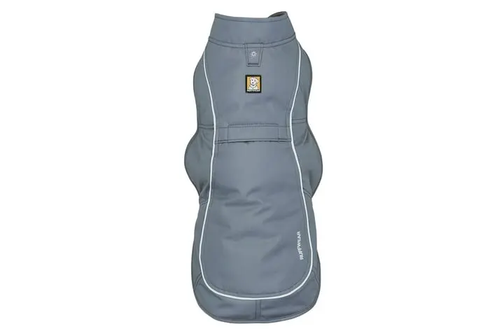 The Overcoat is the classic cold-weather utility jacket, built with sturdy, burly materials to keep up with even the most active dog diving through brush and brambles. The wind- and water-resistant outer fabric sheds light moisture, while the interior recycled polyester fleece lining adds cozy warmth. Side-release buckles on both sides provide easy on/off, and a lead portal allows the Overcoat to be worn over all Ruffwear harnesses (and most other harnesses).