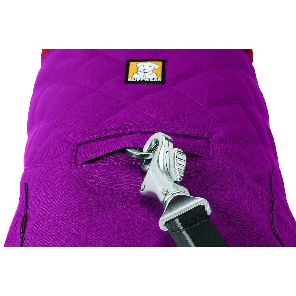 The Ruffwear Stumptown™ is a classic, everyday jacket that blends insulated warmth with durability. With a modern, quilted design, the Stumptown Jacket is at home in urban environments, yet its abrasion-resistant exterior shell allows this jacket to hold its own on the trail. Recycled polyester insulation provides cozy warmth on clear, cold days, and the leash portal on the back allows the Stumptown to be worn over most harnesses. From town to trail, the Stumptown combines classic style with leading edge performance.